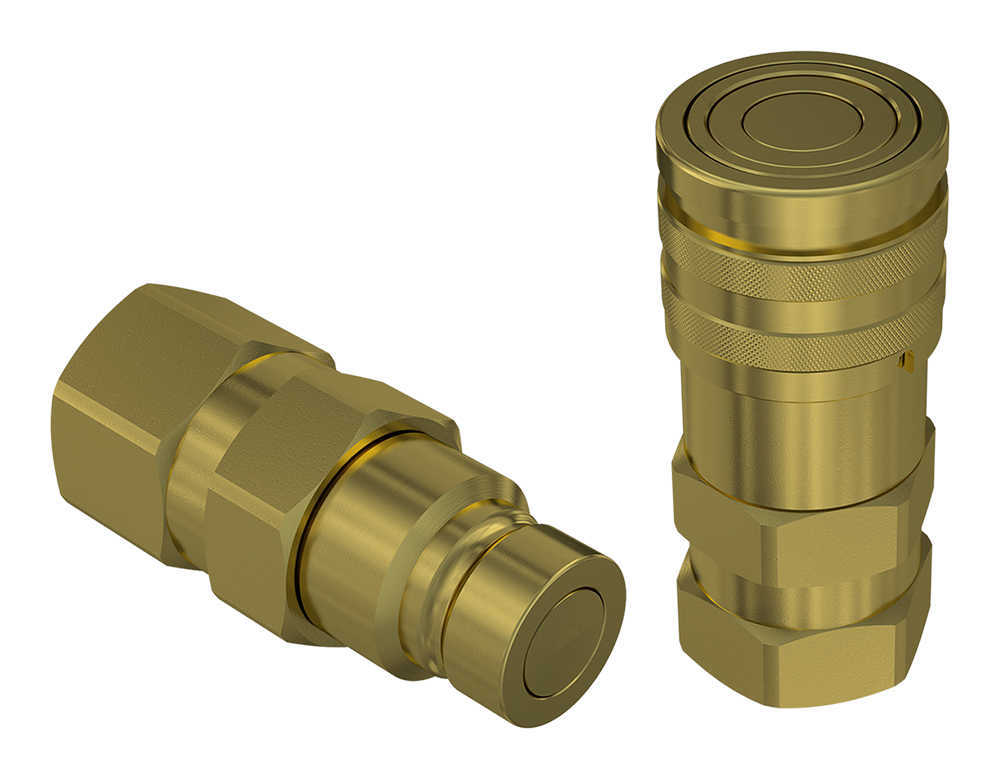 Flat face couplings, with brass components and seals in Viton. Suitable for industrial applications. ISO 16028 interchange.