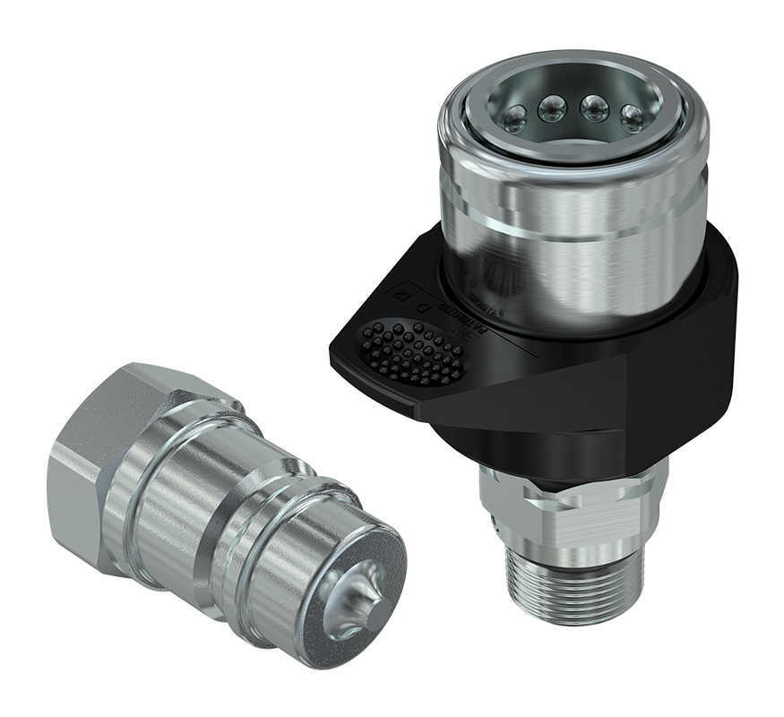 Female couplings connectable with the male part under residual pressure. A sleeve retraction facilitator helps to connect and disconnect. Compact design. ISO 7241 part A interchange.