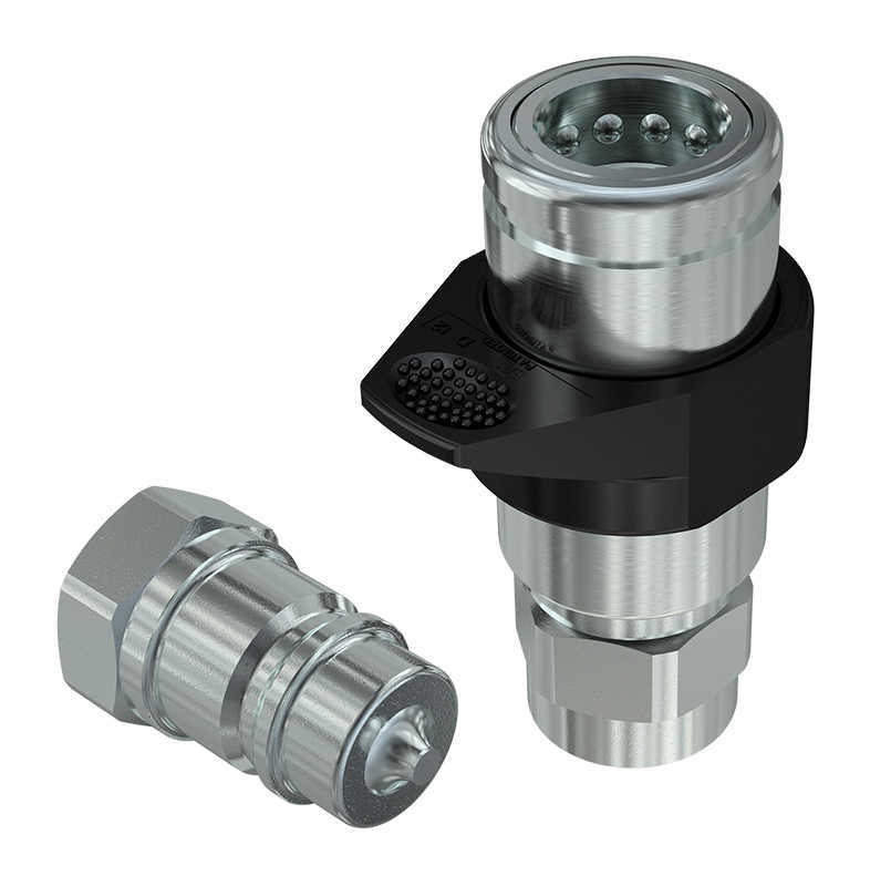Female couplings connectable with the male part under residual pressure. A sleeve retraction facilitator helps to connect and disconnect. ISO 7241 part A interchange.