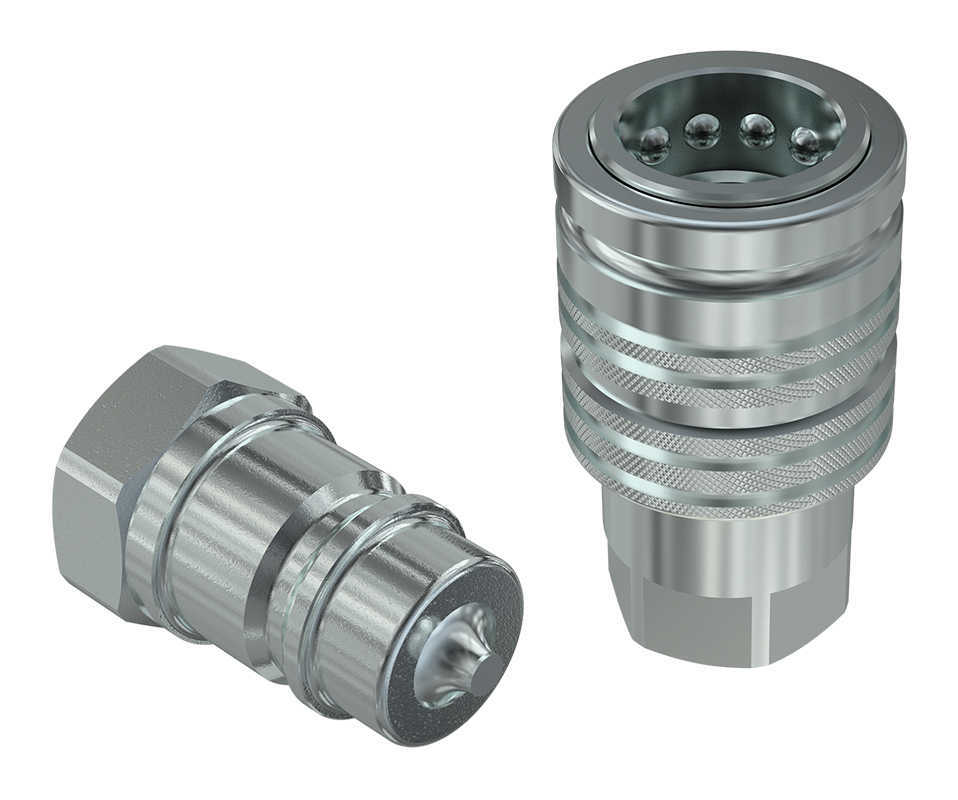 Push-pull couplings, designed for panel mounting installation. Thanks to a microvalve it's possible to easily spill some oil when necessary in order to relieve the residual pressure into the female half. BSP and NPT female thread available. Breakaway function. ISO 7241 part A interchange.