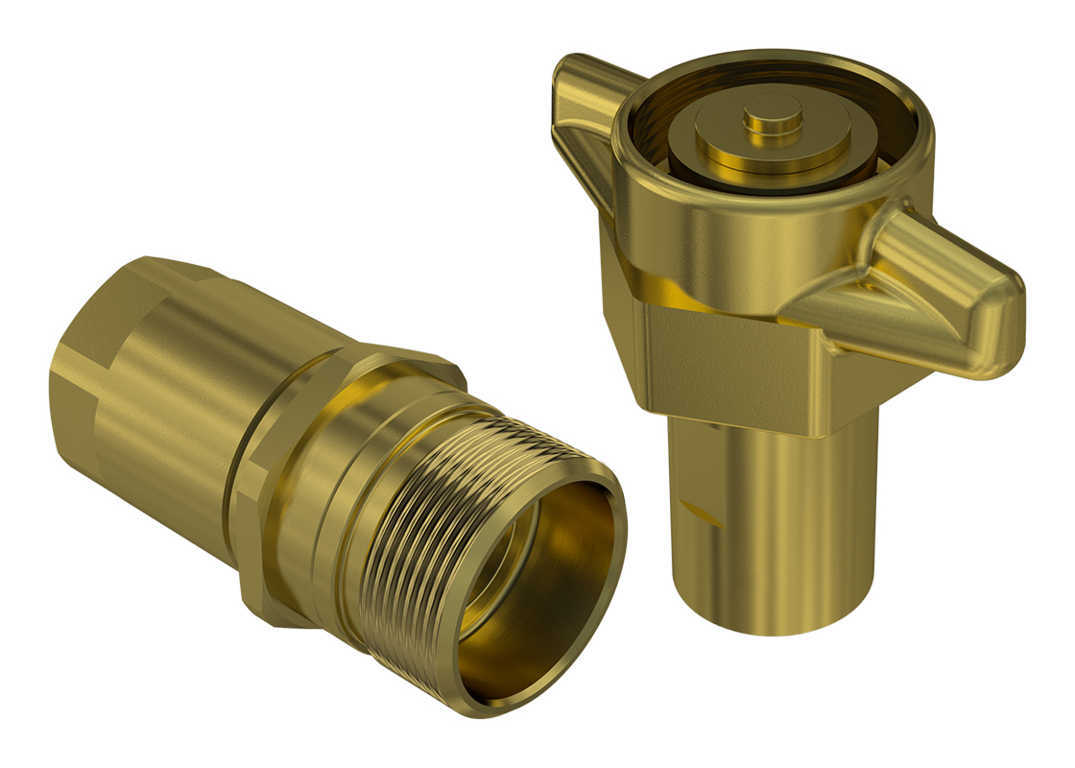 Screw-on flat face brass couplings suitable to vehicles and road machines applications. A wing-shaped sleeve helps to connect and disconnect by hand. Interchangeable for US market.