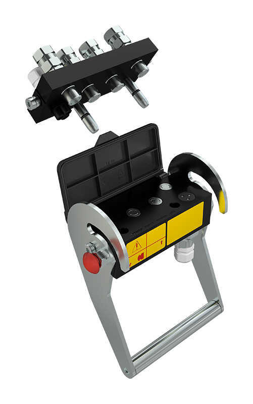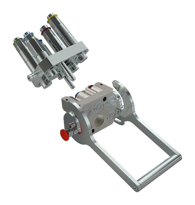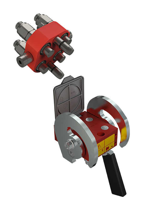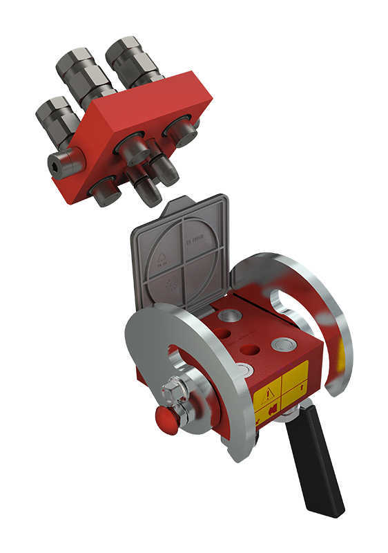 New multiconnection system specifically designed to withstand high pressure applications (42 MPa). Equipped with 4 lines size 08. Red paint plates and zn-ni surface protection.