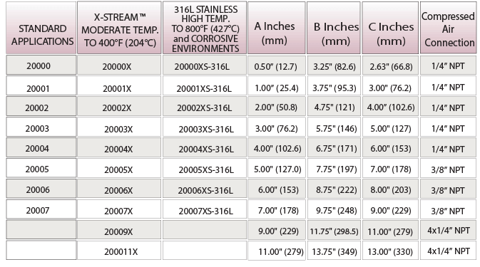 Special diameters for the Air Wipe Blow-Off System are available on special request from Nex Flow™.