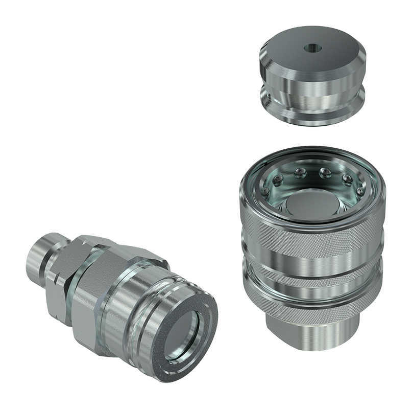 Flat face couplings designed to connect the braking circuit of trailers to the hydraulic circuit of agricultural machines. ISO 5676 interchange. Some special versions equipped with an additional safety sleeve (VFS) or with an hydraulic lock (VFB) to prevent accidental disconnections are available in the range.